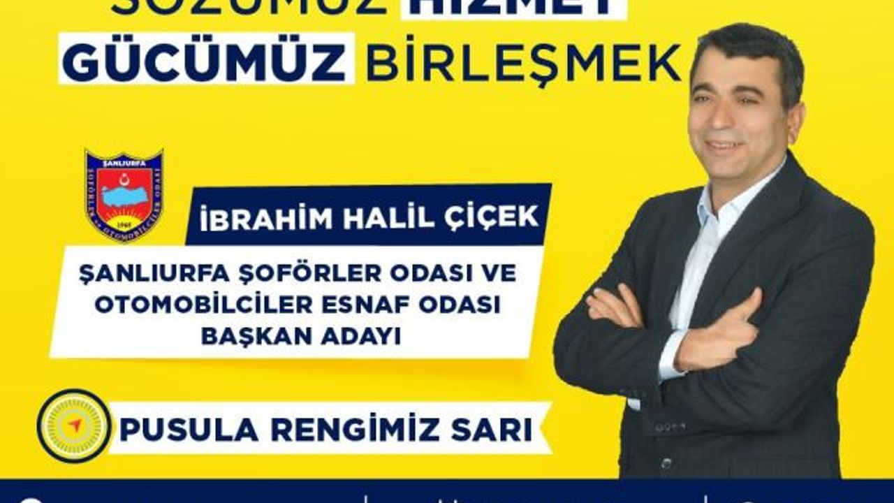 Şoförler ve Otomobilciler Odası Başkan Adayı İbrahim Halil Çiçek "11 Ocak 2026 tarihinde Kapalı Spor Salonu’nda yapılacak Şoförler ve Otomobilciler Odası seçimlerinin; kırıcı dilden uzak, tevazu, kardeşlik ve karşılıklı saygı içinde, adeta bir bayrak yarışı anlayışıyla geçmesini temenni ediyorum.