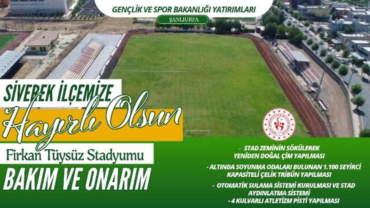 Bucak paylaşımında, söz konusu yatırımın Siverek için önemli olduğunu belirterek, stadyumda gerçekleştirilecek bakım ve onarım çalışmalarının ilçeye hayırlı olmasını diledi.