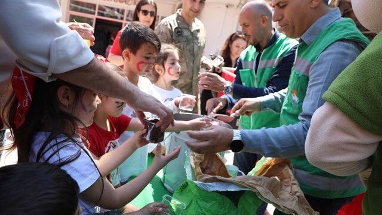 Etkinlik boyunca yüz boyama aktiviteleriyle neşelenen çocuklar, kendilerine dağıtılan Türk bayrakları