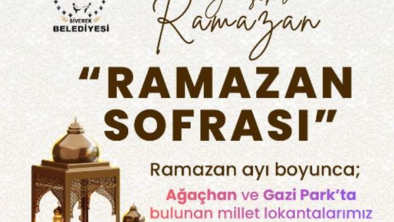 Her gün Cumhuriyet Caddesi üzerinde bulunan Ağaçhan parkı ile Hürriyet Caddesi üzerindeki Gazi Park’taki Millet Lokantalarında kurulan “Ramazan Sofrası'' vatandaşlara hizmet verecek.