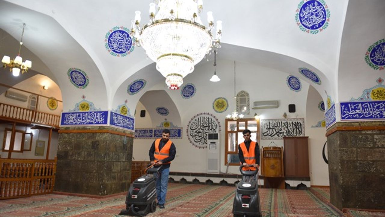 Temizlik İşleri Müdürlüğü ekiplerince yürütülen çalışmalar kapsamında ilçe genelindeki camilerde temizlik yapılıyor.