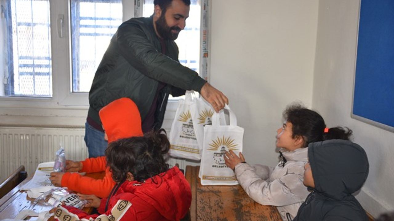 Belediye ekipleri de içerisinde kolonya, şampuan, sıvı sabun ve ıslak mendilin yer aldığı hijyen setlerini dağıttı.